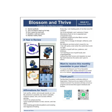 The monthly Blossom and Thrive newsletter is sent out via email to all website subscribers on the first Tuesday of each month.